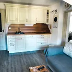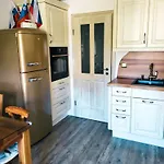 This apartment is complete with a refrigerator, an oven, and kitchenware in a full kitchen. The apartment is a 56-minute drive from Brnik airport.